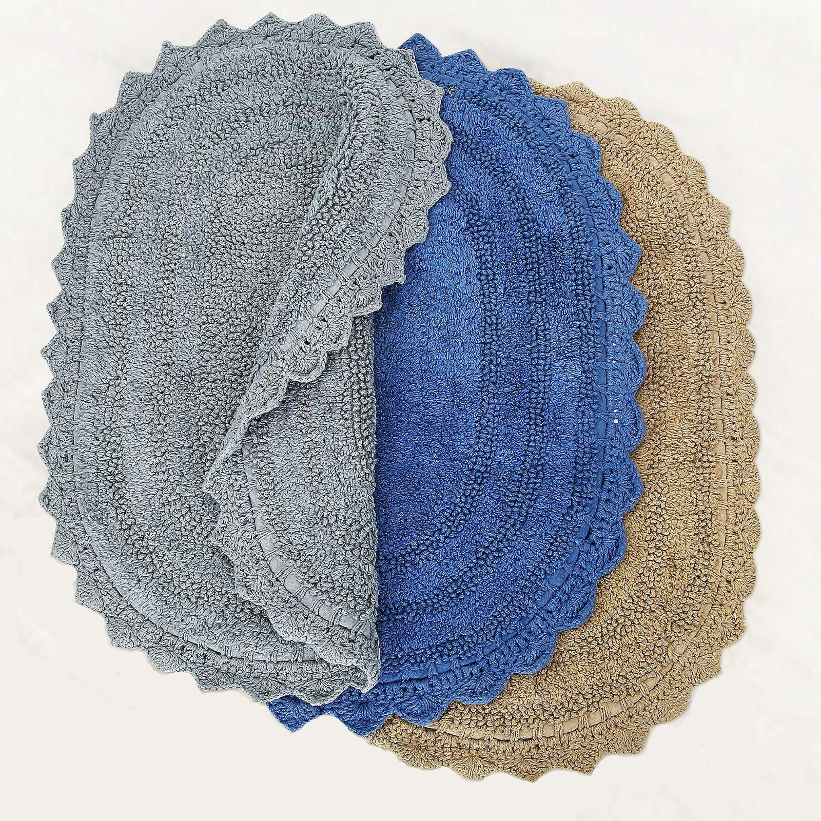 Chenille Shaggy Racetrack Bathmat with Crochet Lace
